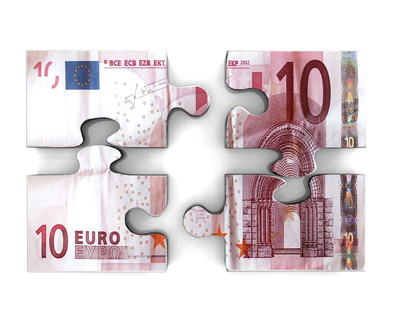Обои Пазл из купюры евро на белом фоне