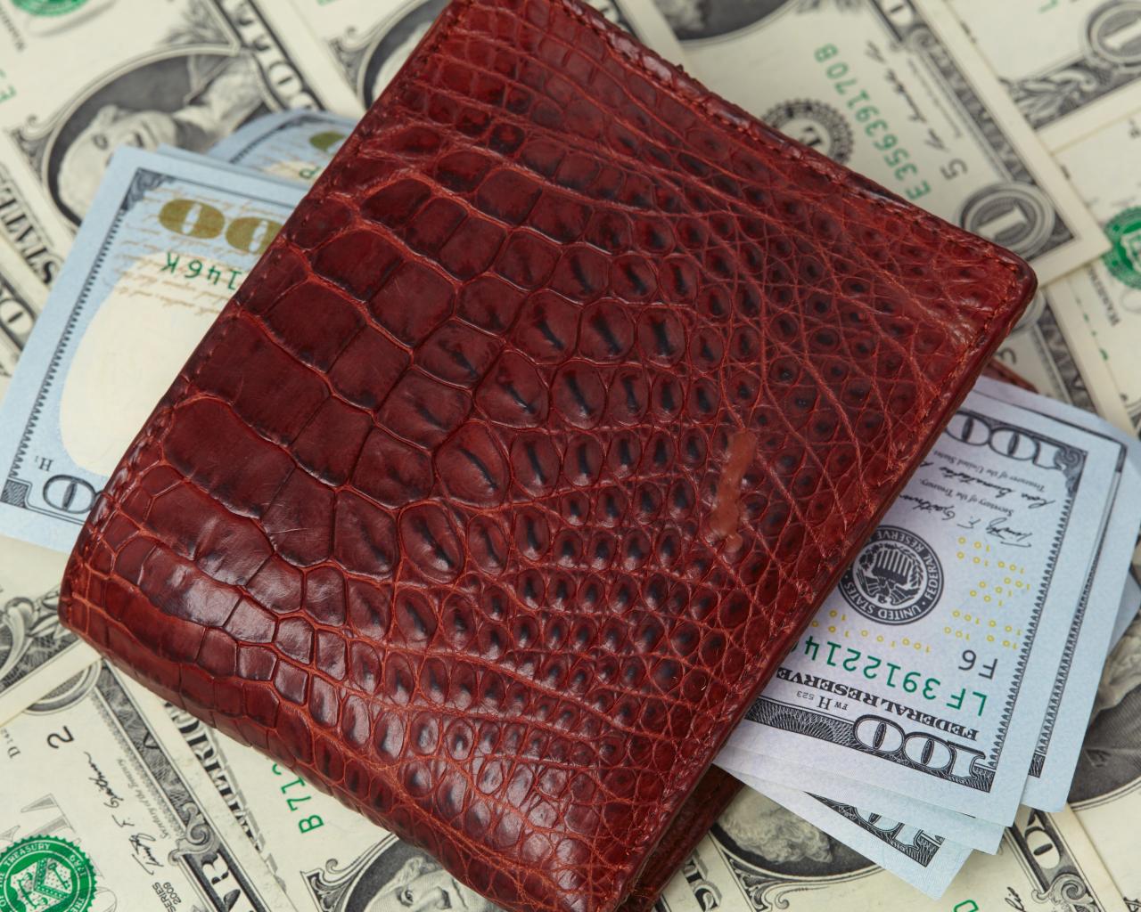 Обои Кожаный кошелек с долларовыми купюрами