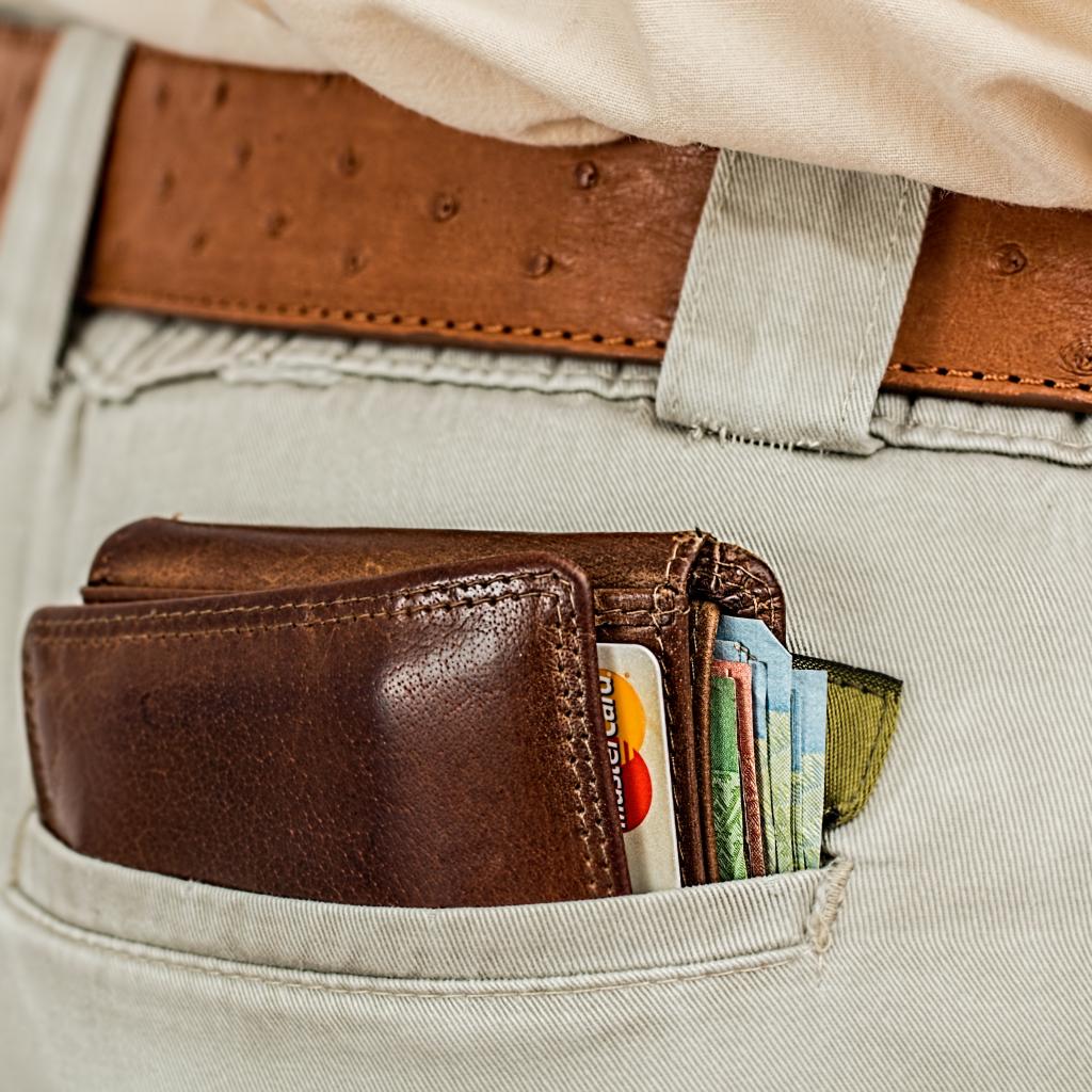 Обои Кошелек с деньгами и карточками в кармане брюк