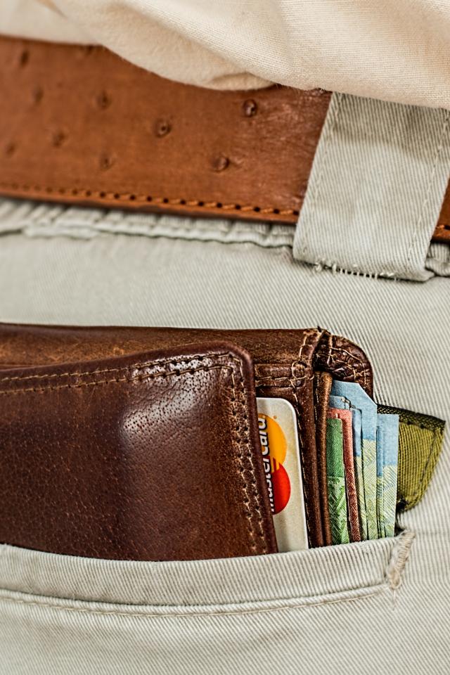 Обои Кошелек с деньгами и карточками в кармане брюк