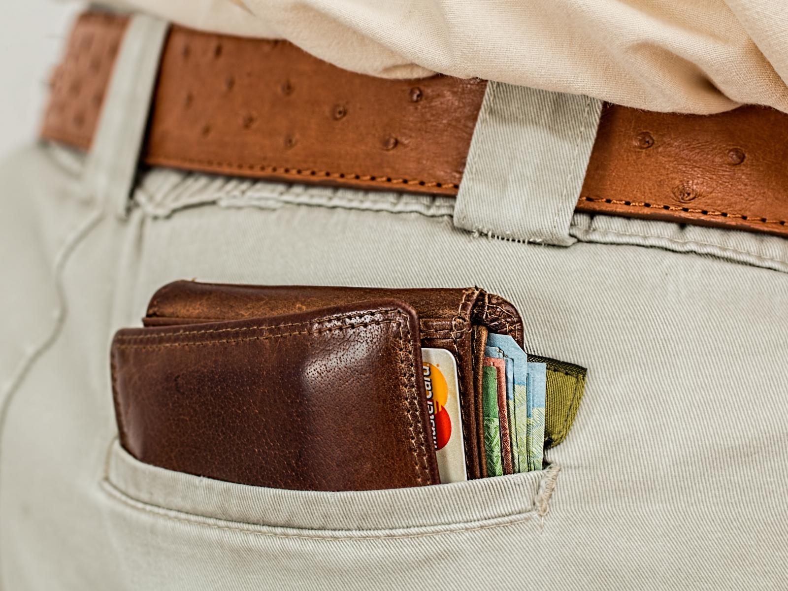 Обои Кошелек с деньгами и карточками в кармане брюк