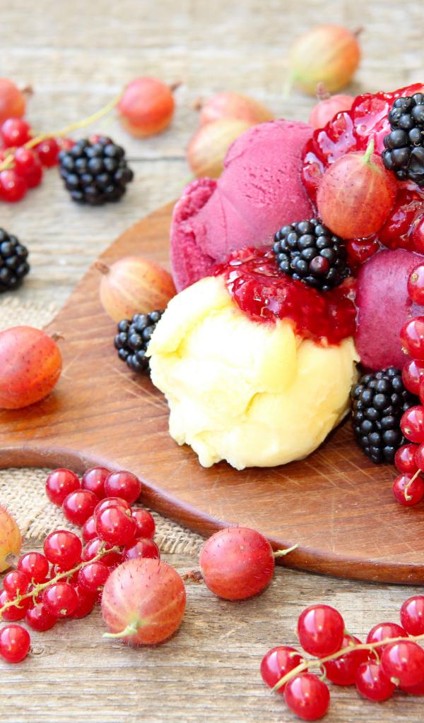 Обои Мороженое и ягоды на разделочной доске