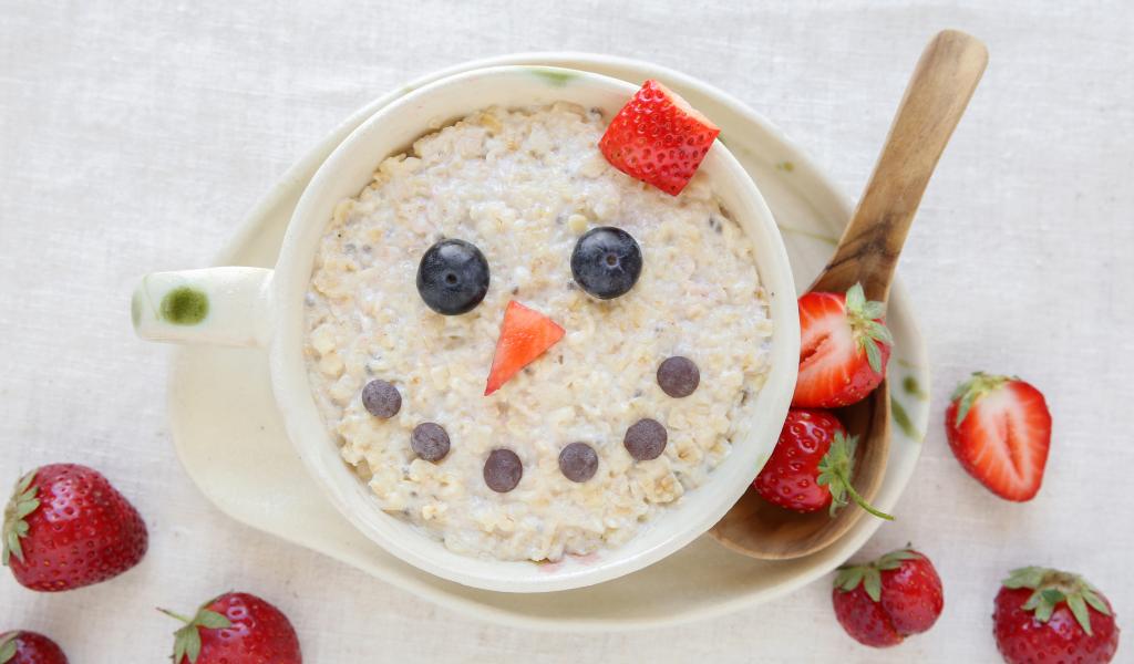 Обои Забавный завтрак из каши с ягодами