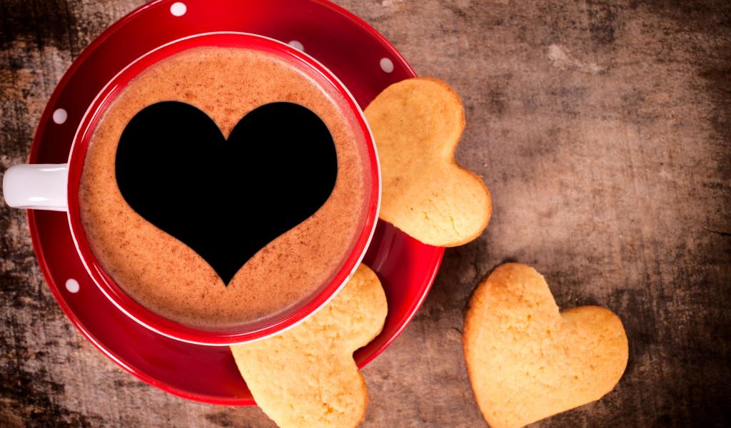 Обои Кофе в красной чашке с печеньем