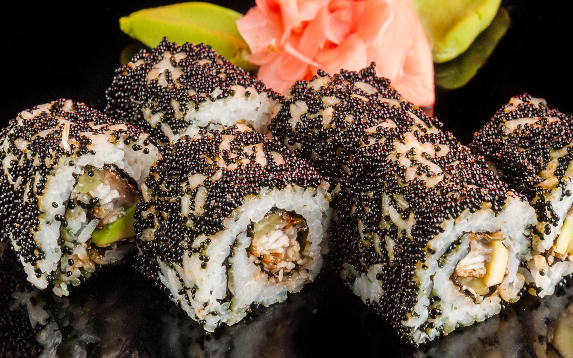 Обои Аппетитные роллы с черной икрой