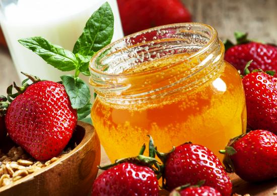 Обои Мед и спелая свежая клубника