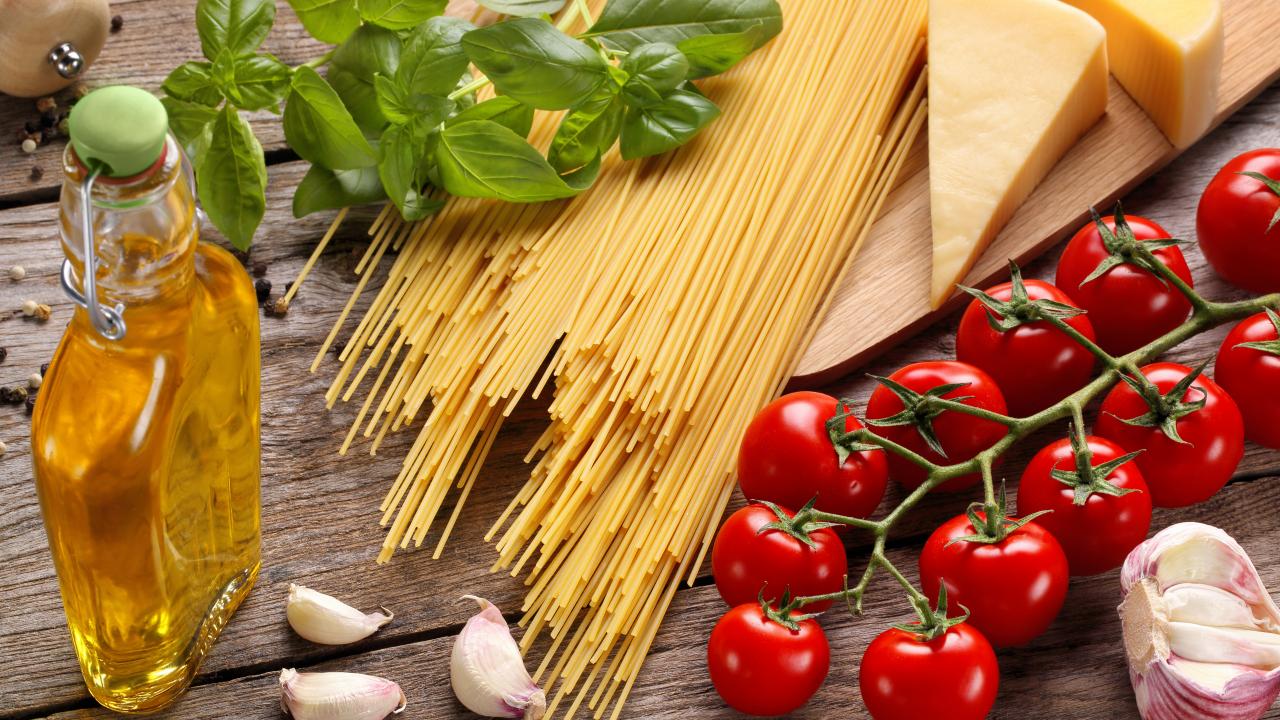 Обои Спагетти с сыром, томатом и маслом