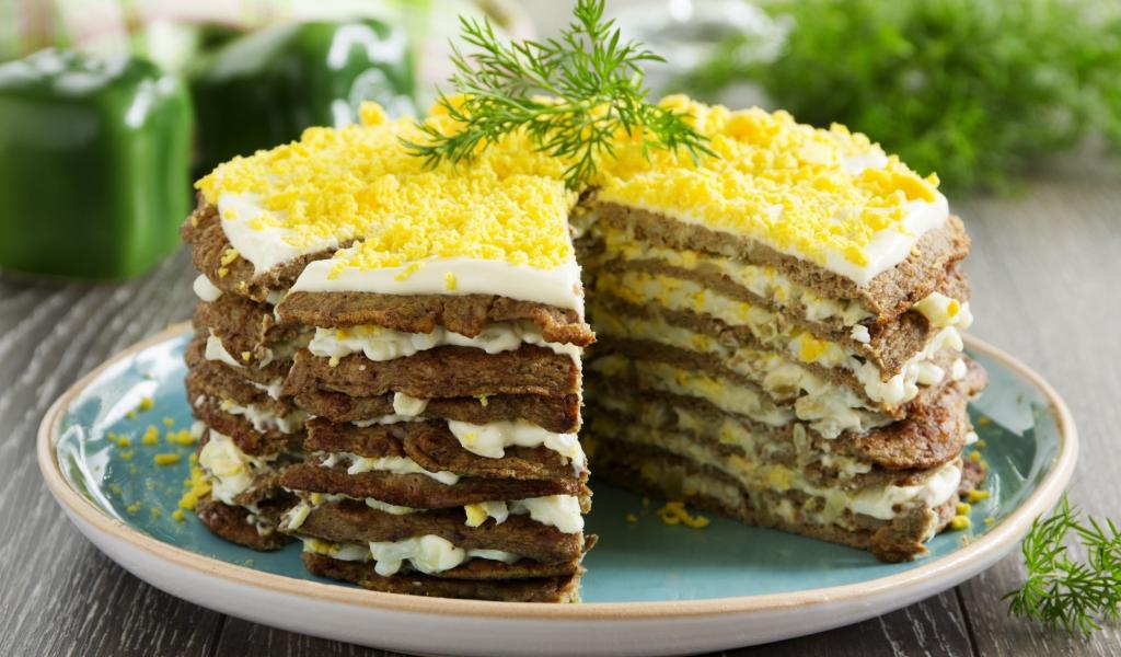 Обои Аппетитный печеночный торт на блюде