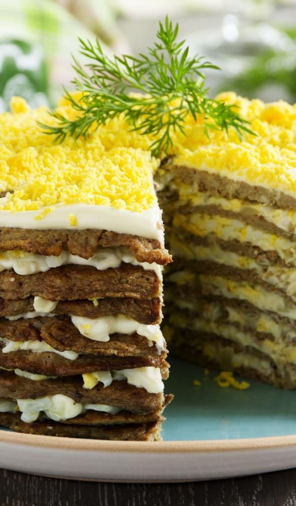 Обои Аппетитный печеночный торт на блюде
