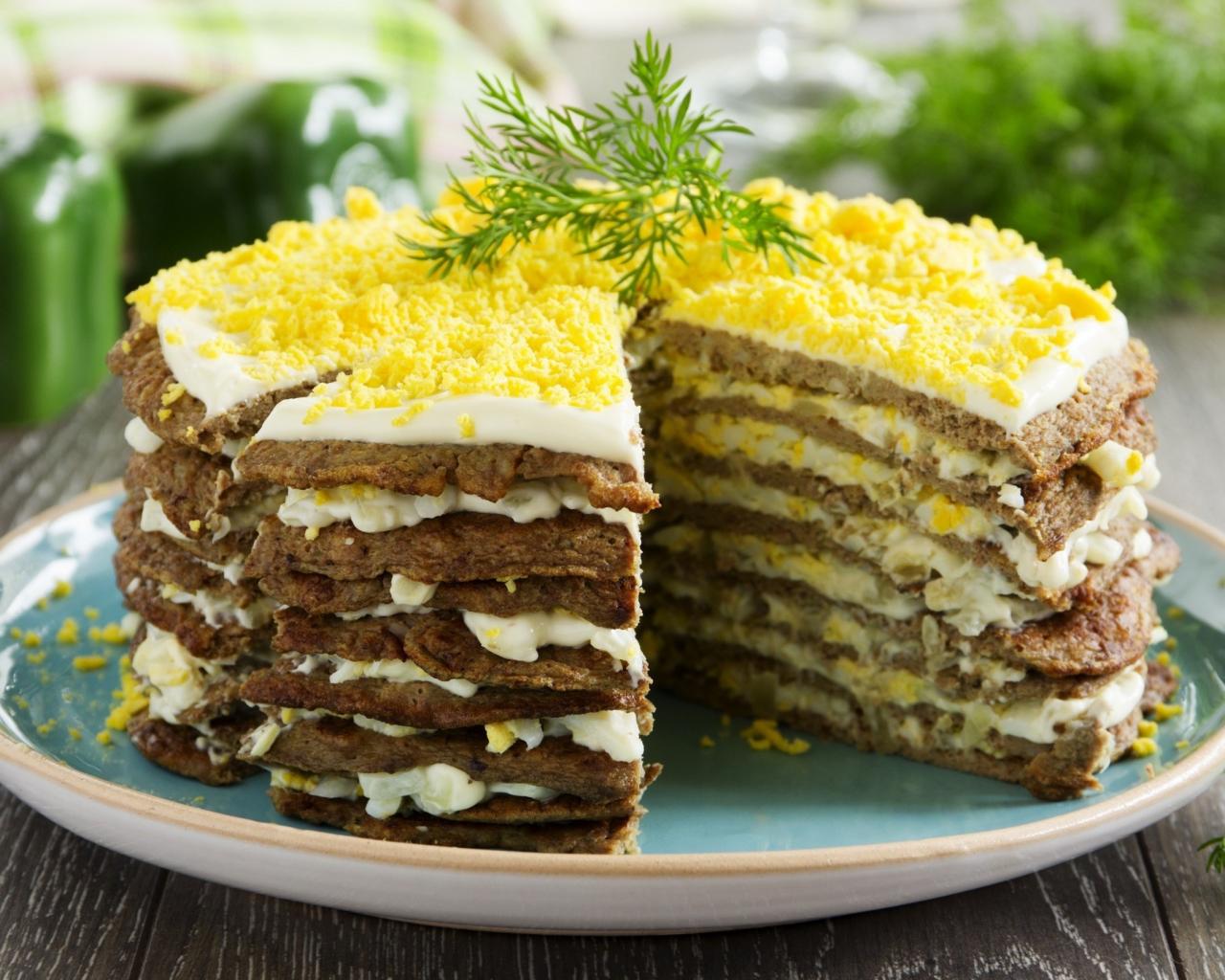 Обои Аппетитный печеночный торт на блюде