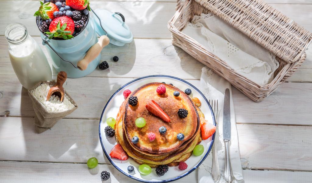Обои Оладьи с ягодами и молочными продуктами на завтрак