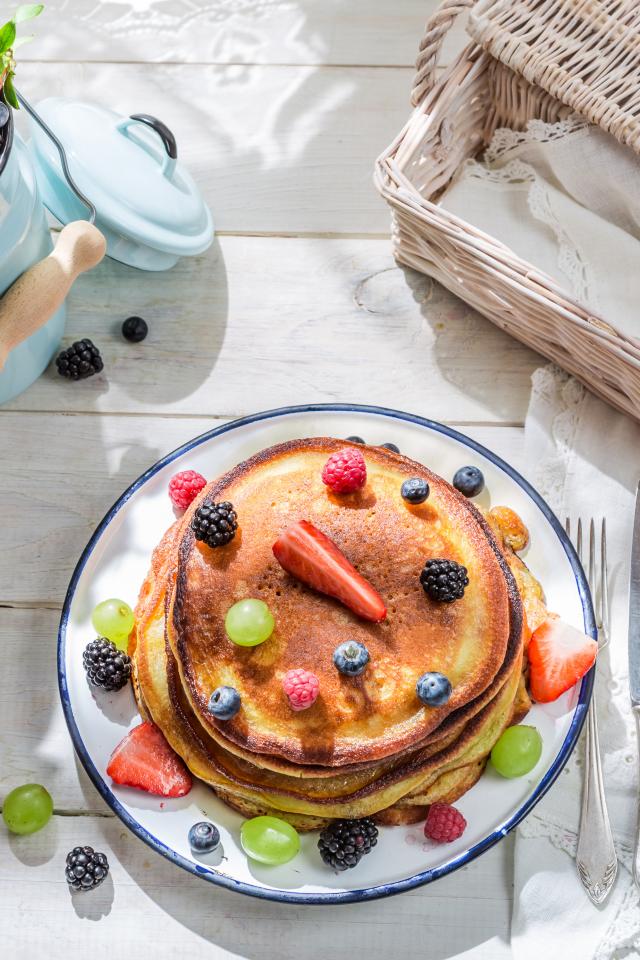Обои Оладьи с ягодами и молочными продуктами на завтрак