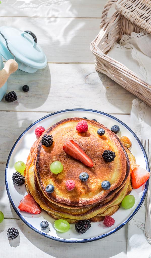 Обои Оладьи с ягодами и молочными продуктами на завтрак