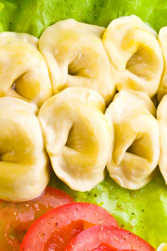 Обои Горячие пельмени с овощами крупным планом