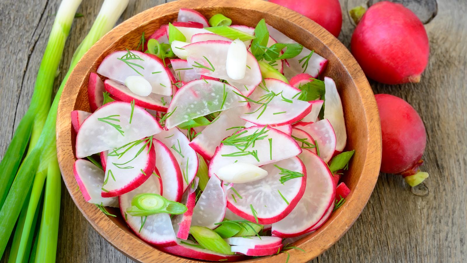 Обои Аппетитный салат со свежего редиса с зеленым луком