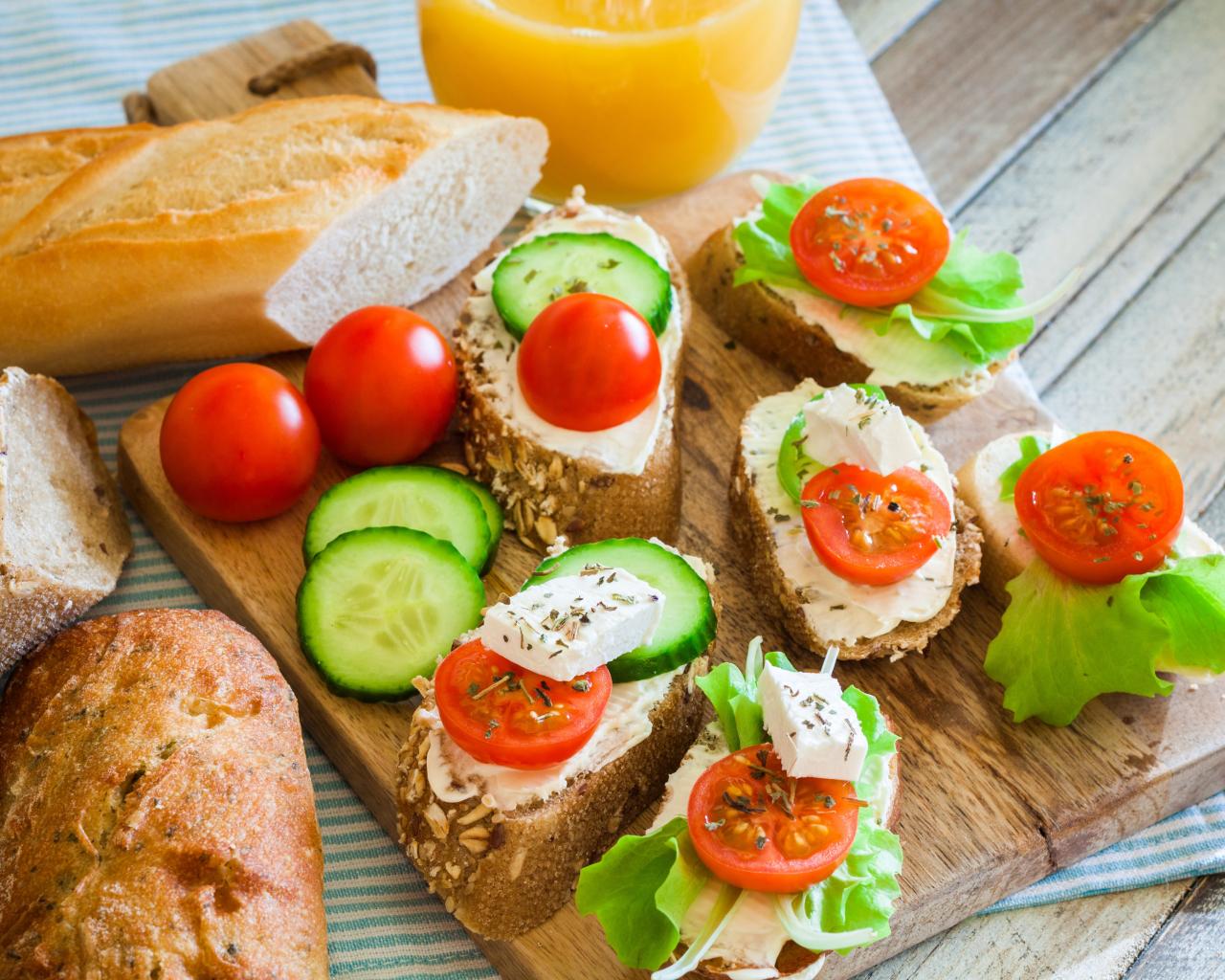 Обои Бутерброды с сыром огурцами и помидорами на завтрак
