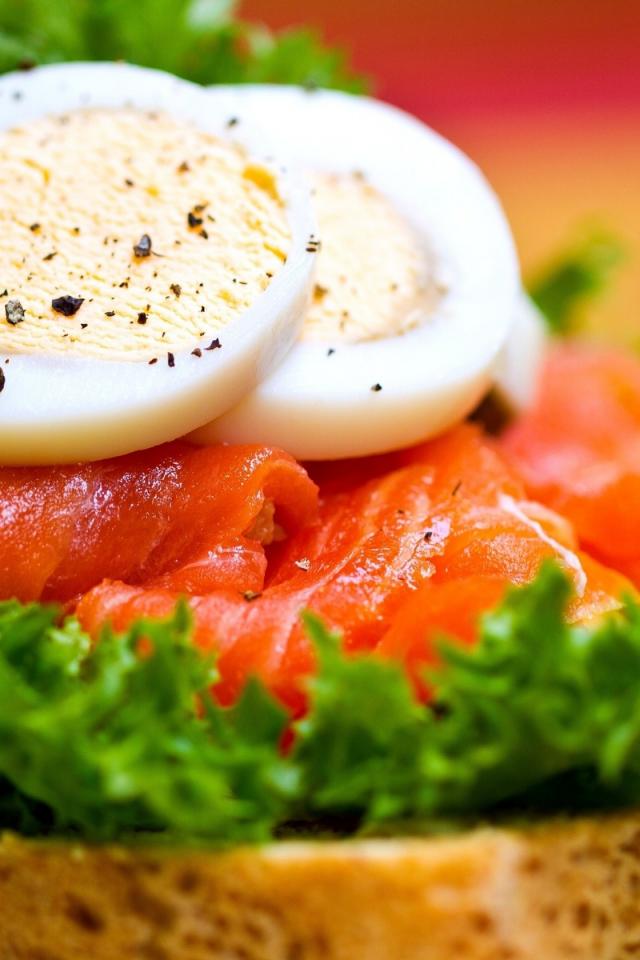 Обои Бутерброд с красной рыбой и вареными яйцами