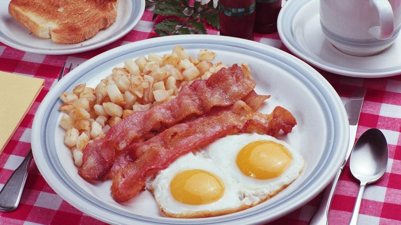 Обои Яичница глазунья с беконом на завтрак