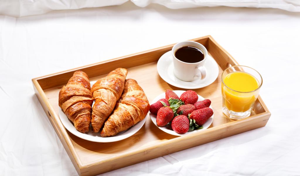 Обои Круассаны, клубника, апельсиновый сок и кофе на завтрак