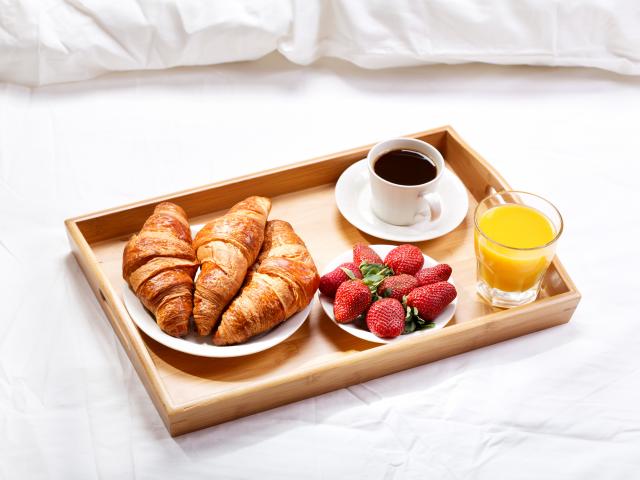 Обои Круассаны, клубника, апельсиновый сок и кофе на завтрак
