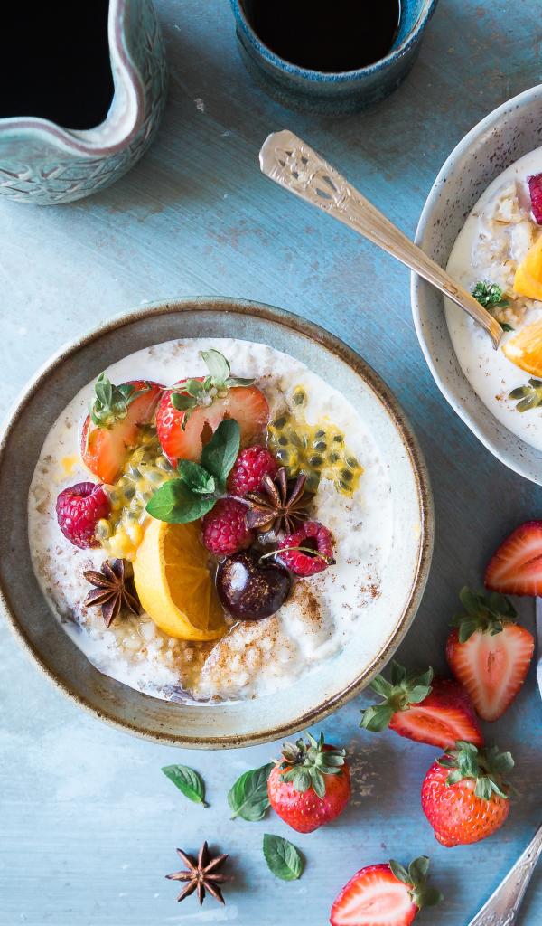 Обои Вкусная молочная каша с ягодами на завтрак