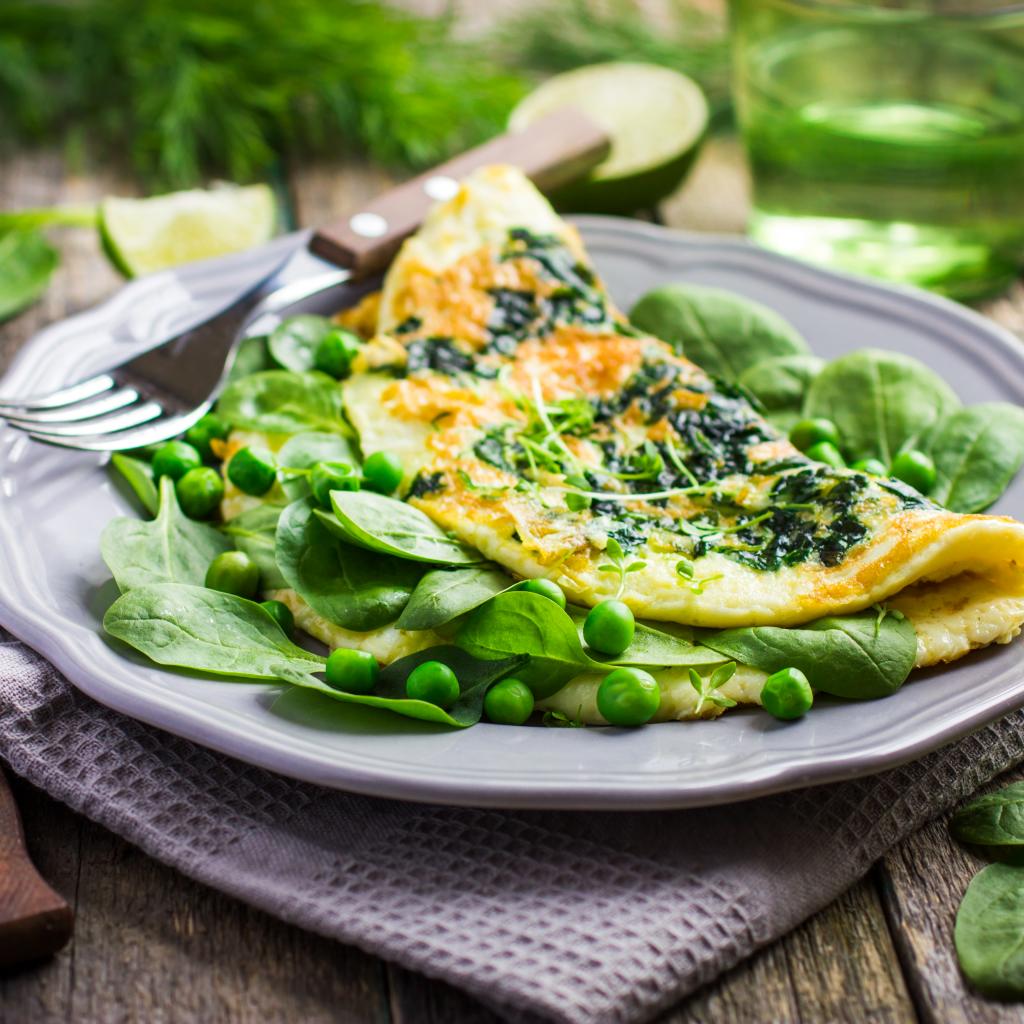 Обои Аппетитный омлет с зелеными горошком и зеленью