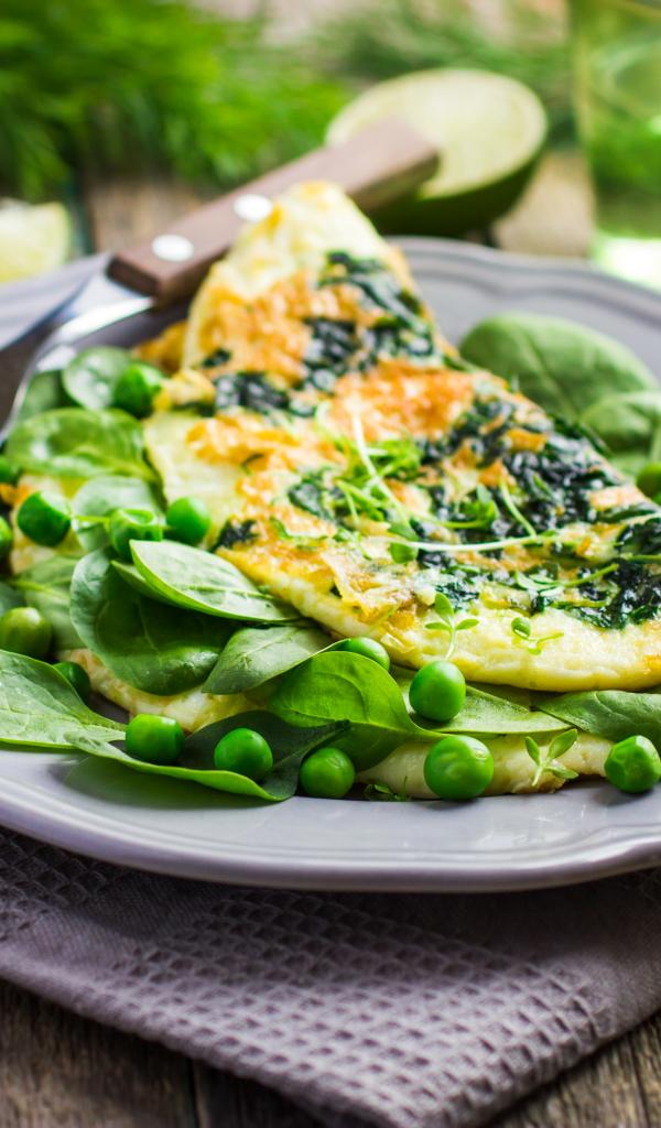 Обои Аппетитный омлет с зелеными горошком и зеленью