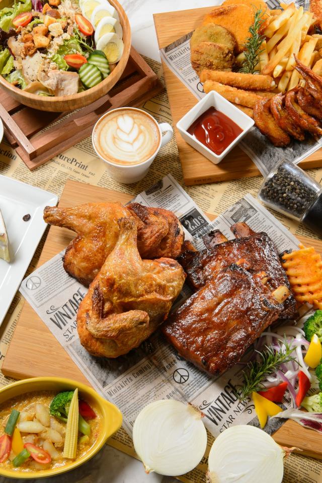 Обои Аппетитный натюрморт еды из фаст фуда на столе