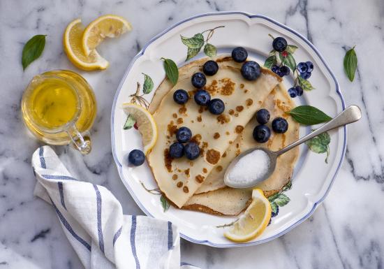 Обои Тонкие блинчики с черникой, лимоном и медом