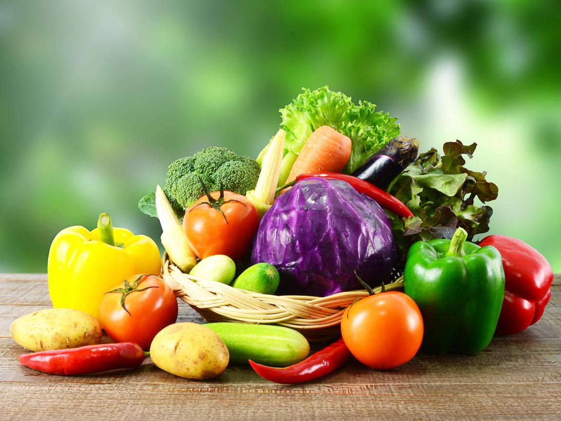 Обои Свежие овощи в корзинке на столе