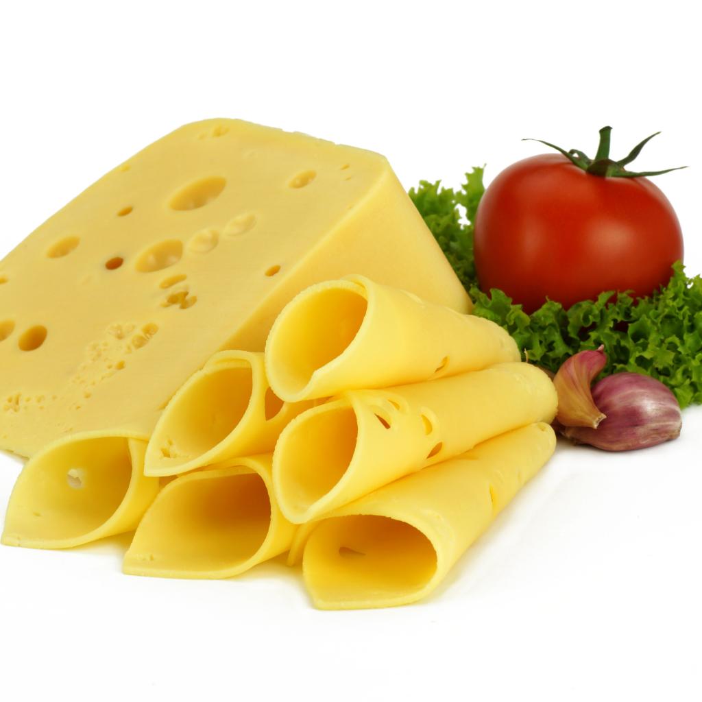 Обои Сырная нарезка с помидором, листьями салата и чесноком на белом фоне
