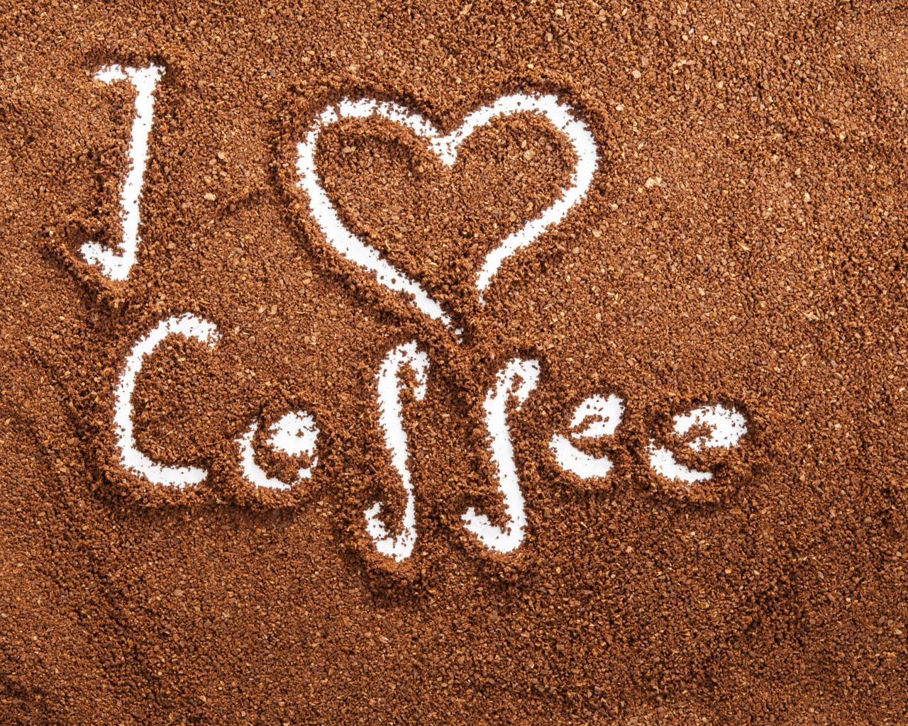 Обои Черный молотый кофе с надписью Я люблю кофе