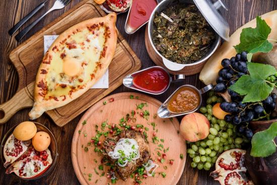 Обои Сытный обеденный стол с вкусными угощениями, натюрморт