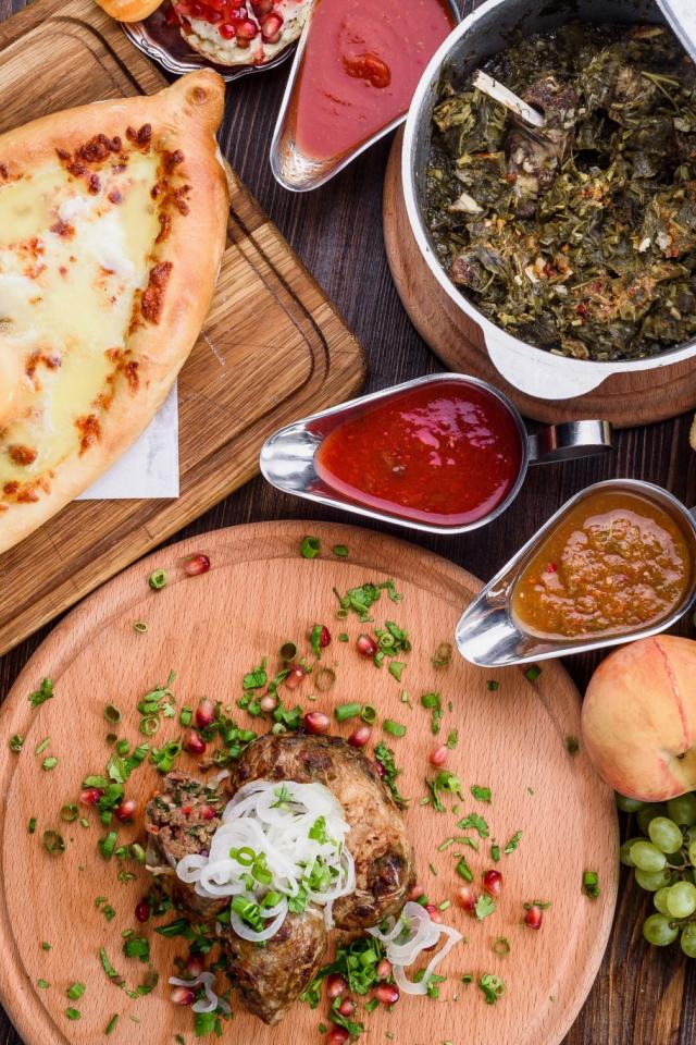 Обои Сытный обеденный стол с вкусными угощениями, натюрморт