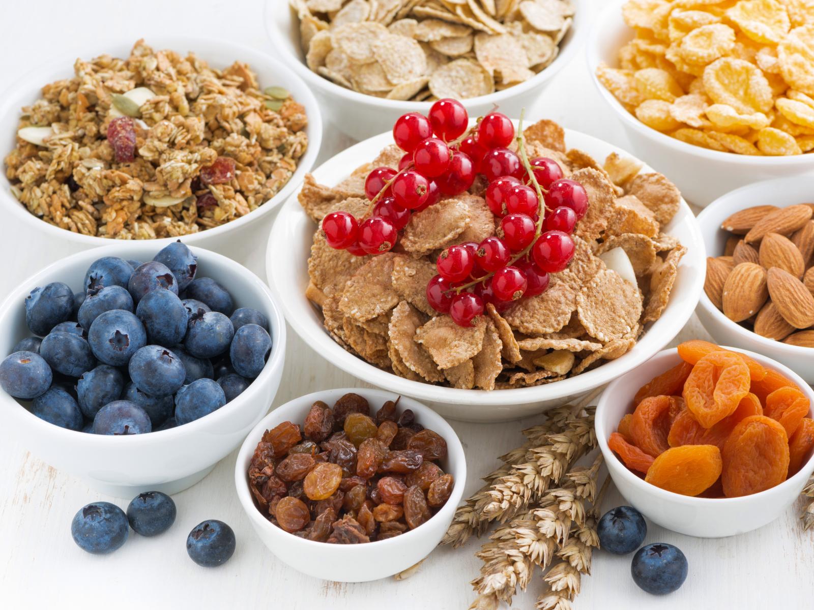 Обои Хлопья на завтрак с орехами, ягодами и сухофруктами