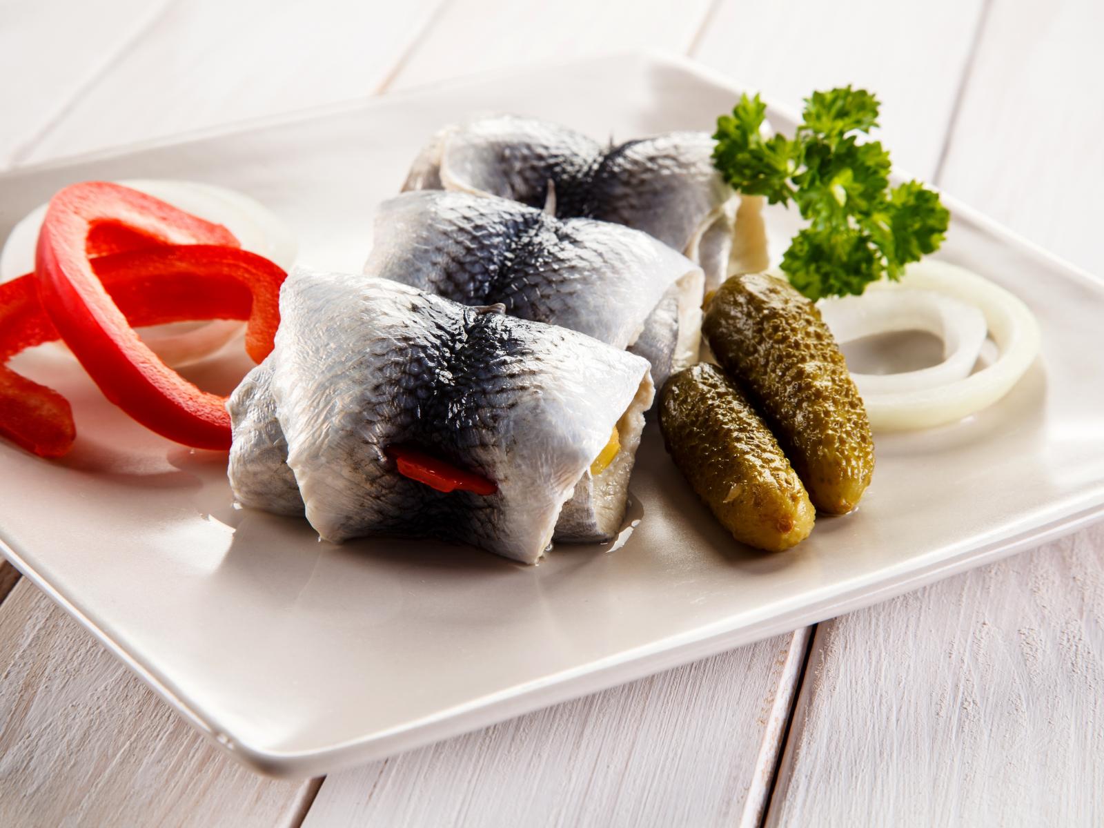 Обои Рулетики из сельди с солеными огурцами и болгарским перцем