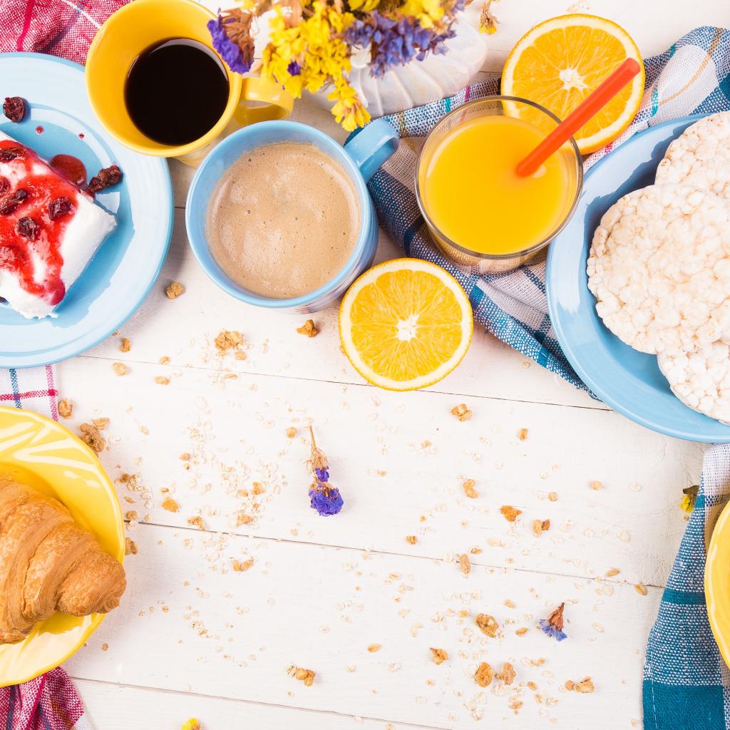 Обои Аппетитный завтрак на столе с бутербродами, кофе и ягодами