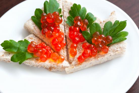 Обои Бутерброды с красной икрой и листиками петрушки