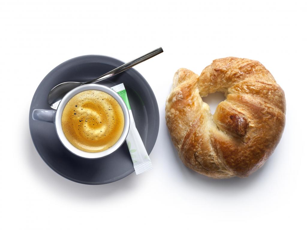 Обои Круассан и чашка кофе на белом фоне