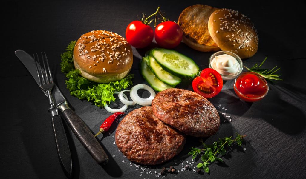 Обои Ингредиенты для гамбургера на столе