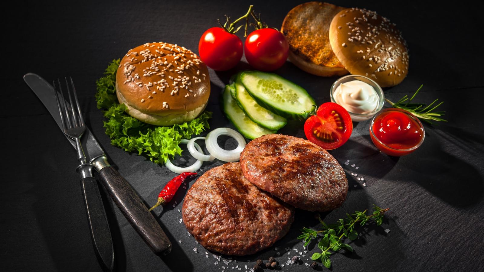 Обои Ингредиенты для гамбургера на столе