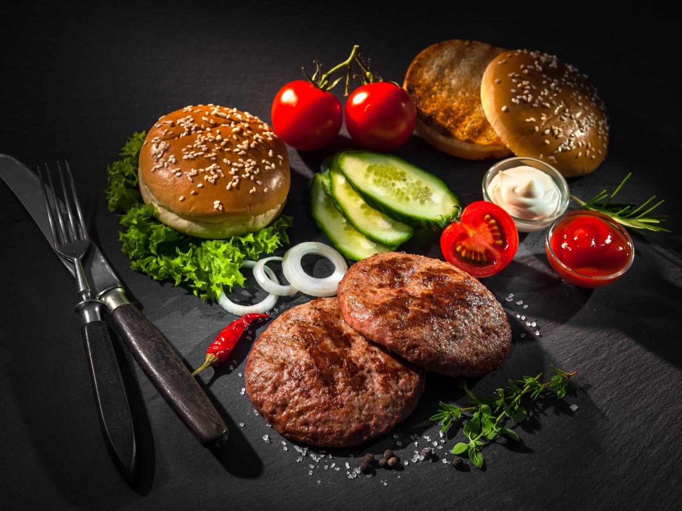 Обои Ингредиенты для гамбургера на столе