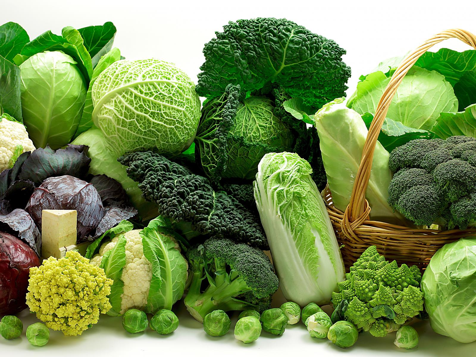 Обои Много разных видов капусты на белом фоне