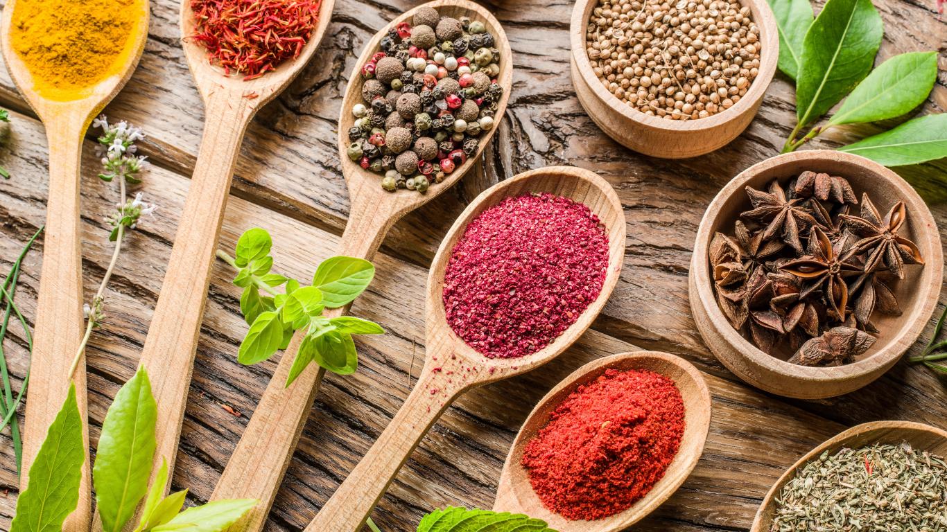Обои Молотые специи в ложках на столе