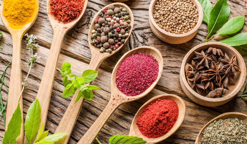 » Обои Специи в деревянных ложках на столе