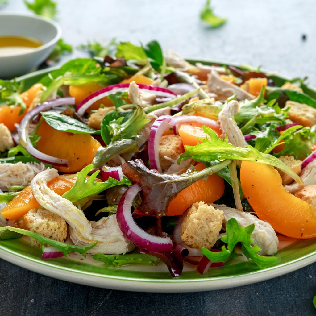 Обои Аппетитный салат с курицей на большой тарелке