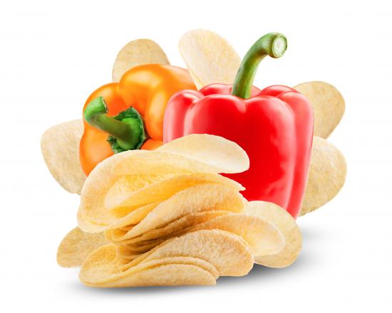 Обои Чипсы с болгарским перцем на белом фоне