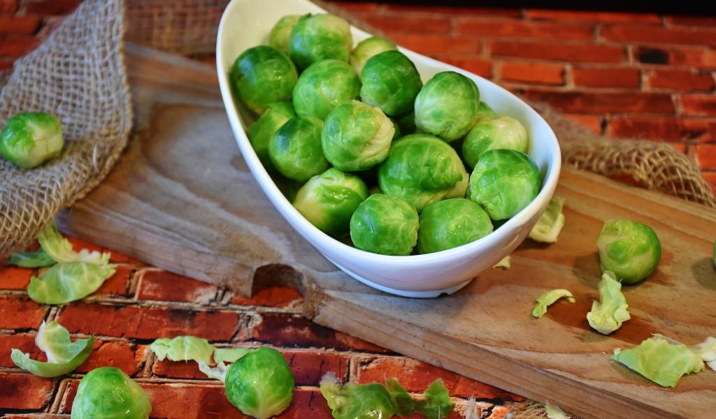 Обои Маленькая зеленая брюссельская капуста на столе