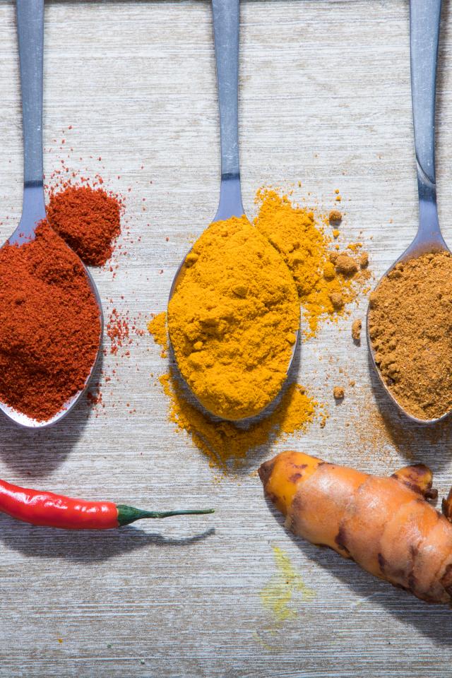 Обои Молотые специи в ложках на столе