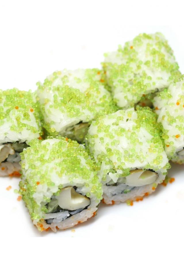 Обои Японские суши с икрой на белом фоне